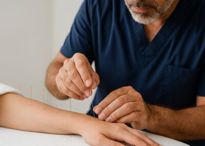 La acupuntura es una técnica de medicina tradicional china que utiliza agujas muy finas en puntos específicos para ayudar a aliviar el dolor, reducir estrés y ansiedad y mejorar el bienestar general. En consulta se aplica de forma personalizada para molestias musculares, cervicales, lumbares y tensiones crónicas.