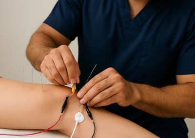 La electroacupuntura es una técnica terapéutica que combina la acupuntura tradicional con una estimulación eléctrica suave aplicada a las agujas. Se utiliza para aliviar el dolor, tratar molestias musculares y articulares, mejorar la circulación y favorecer la recuperación en patologías crónicas y lesiones.